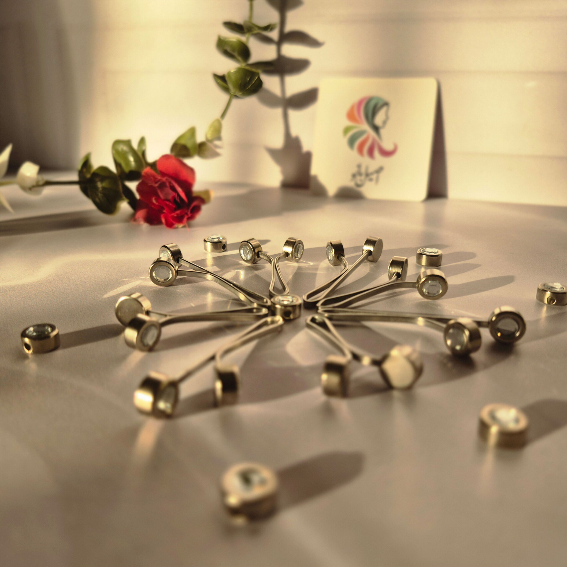 گیره روسری اصیل بانو با سر مهره نگین الماسی (12 عددی)