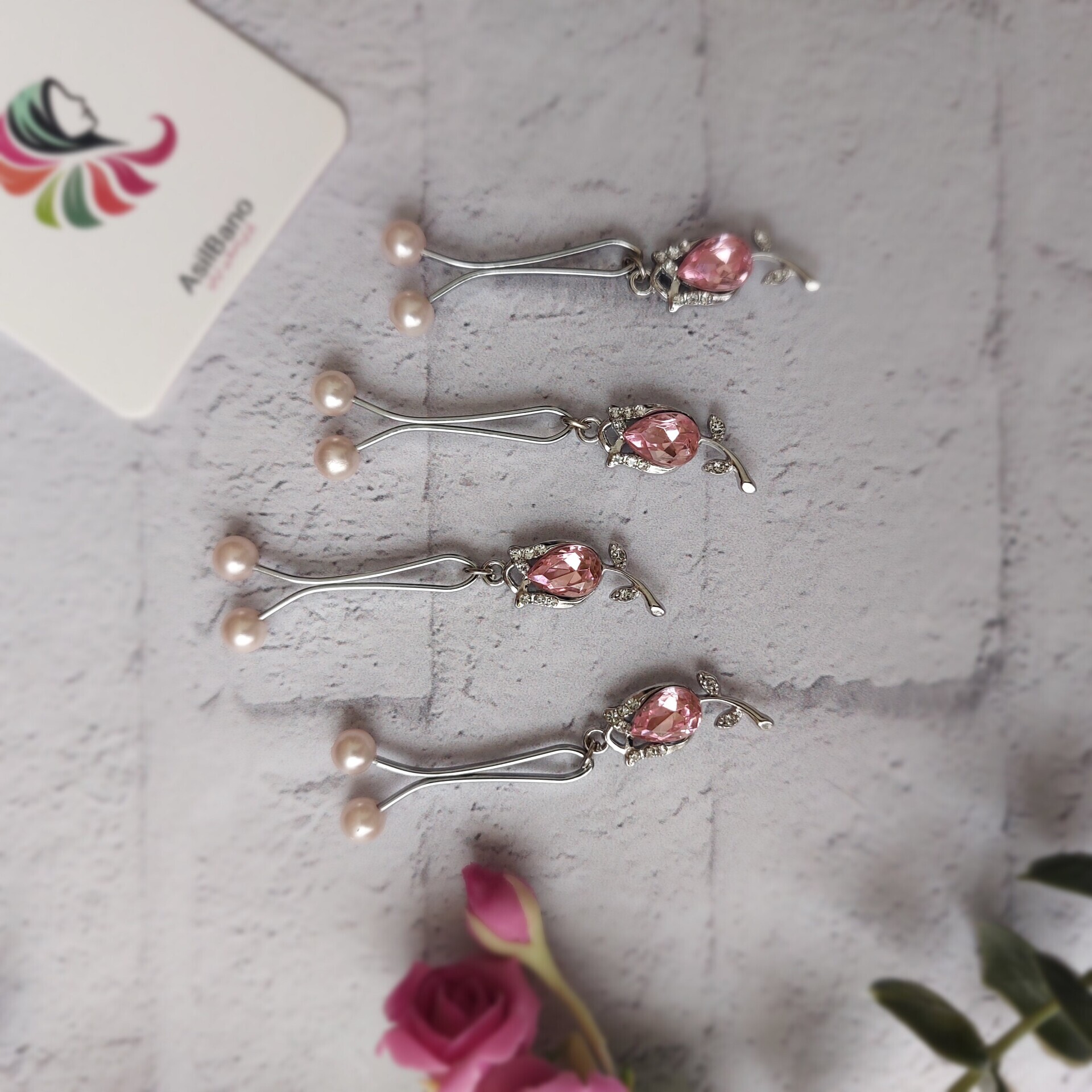 گیره روسری اصیل بانو با آویز گل لاله صورتی کد 17