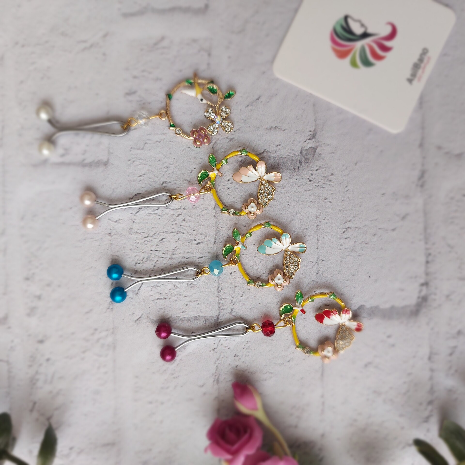 گیره روسری اصیل بانو با آویز پروانه روی شاخه کد 27
