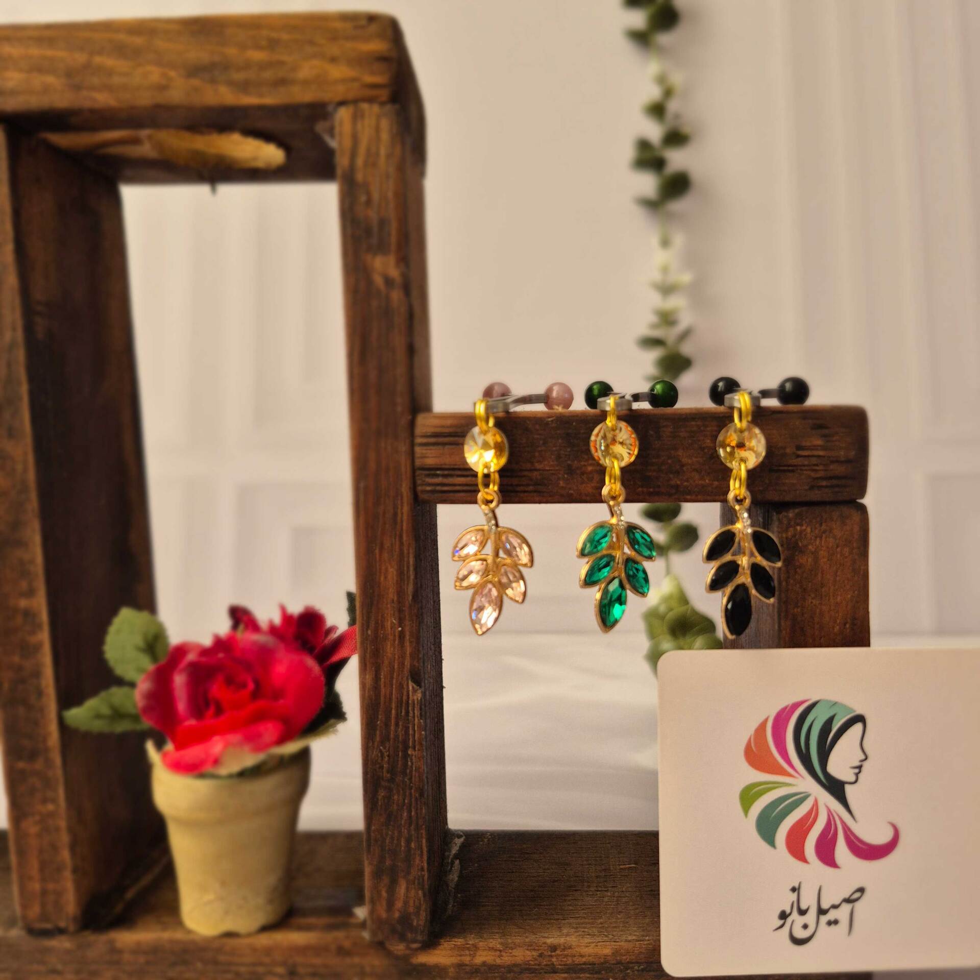 گیره روسری اصیل بانو با آویز برگ نگینی