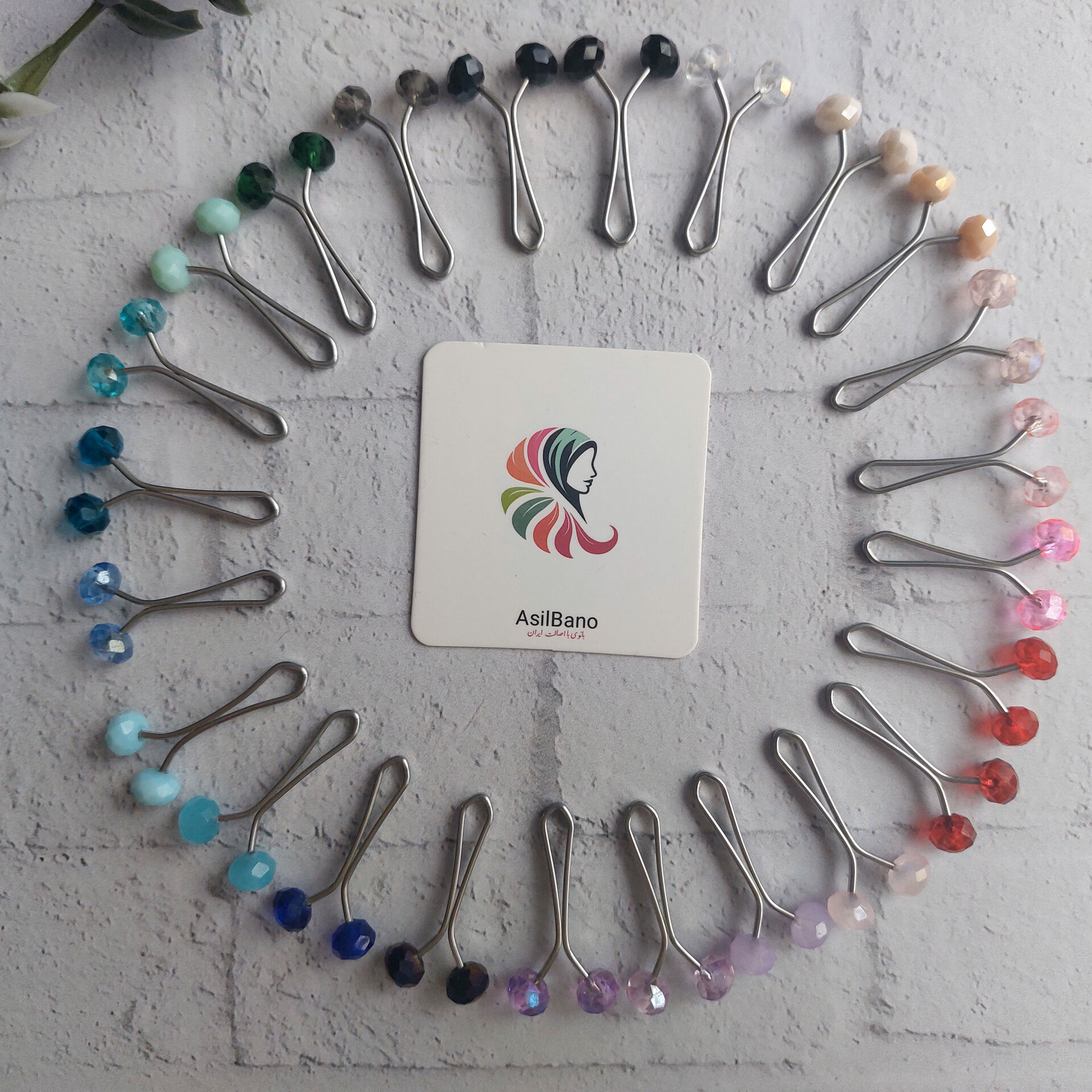 گیره روسری اصیل بانو با سر مهره کریستالی (12 عددی)