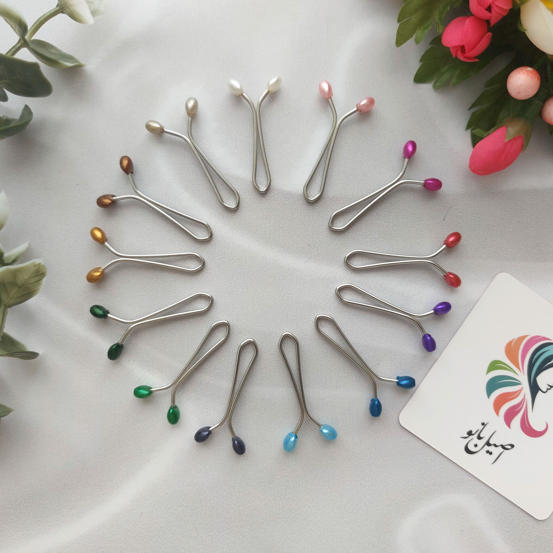 گیره روسری اصیل بانو با سر مهره قلب (12 عددی)