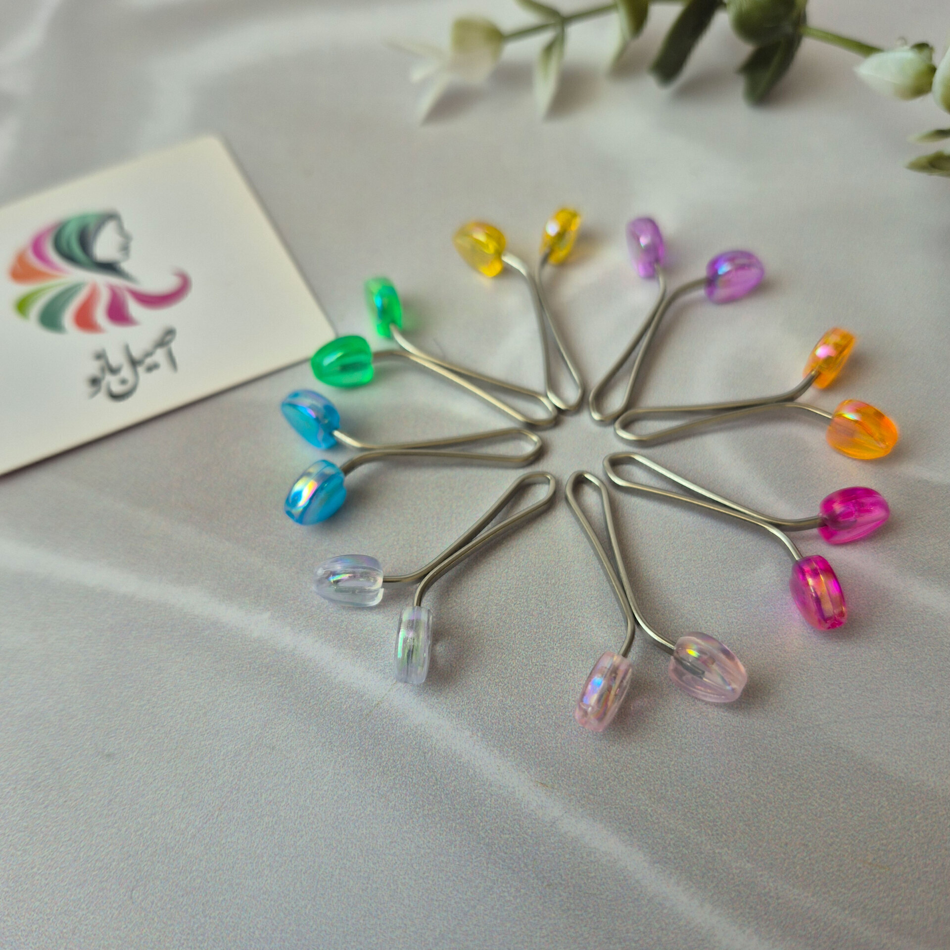 گیره روسری اصیل بانو با سر مهره قلب شیشه ای (12 عددی)